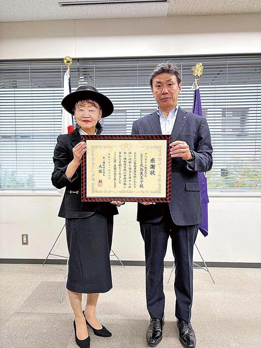 2025年11月18日(火)、ホテル社長は第一機動捜査隊を表敬訪問して、大楽隊長、佐藤副隊長、丸田副隊長に日頃の感謝の気持ちと、昇任された若き刑事のお二人に、お祝いと激励の言葉を直接伝えました。大楽隊長からは、日頃のアパグループの警察活動への貢献を評価いただき、感謝状をいただきました。
